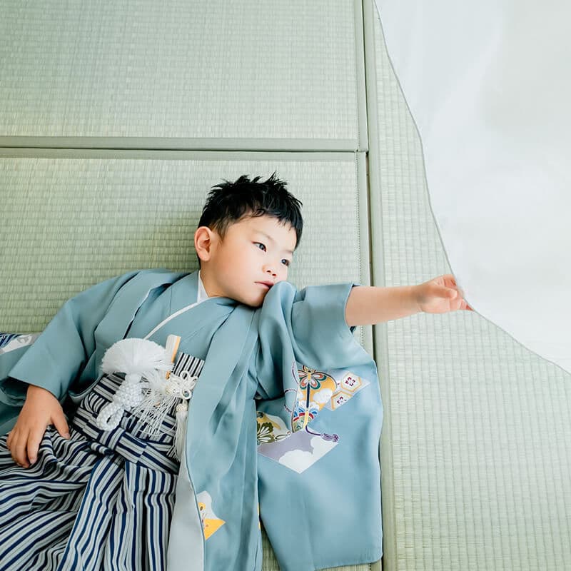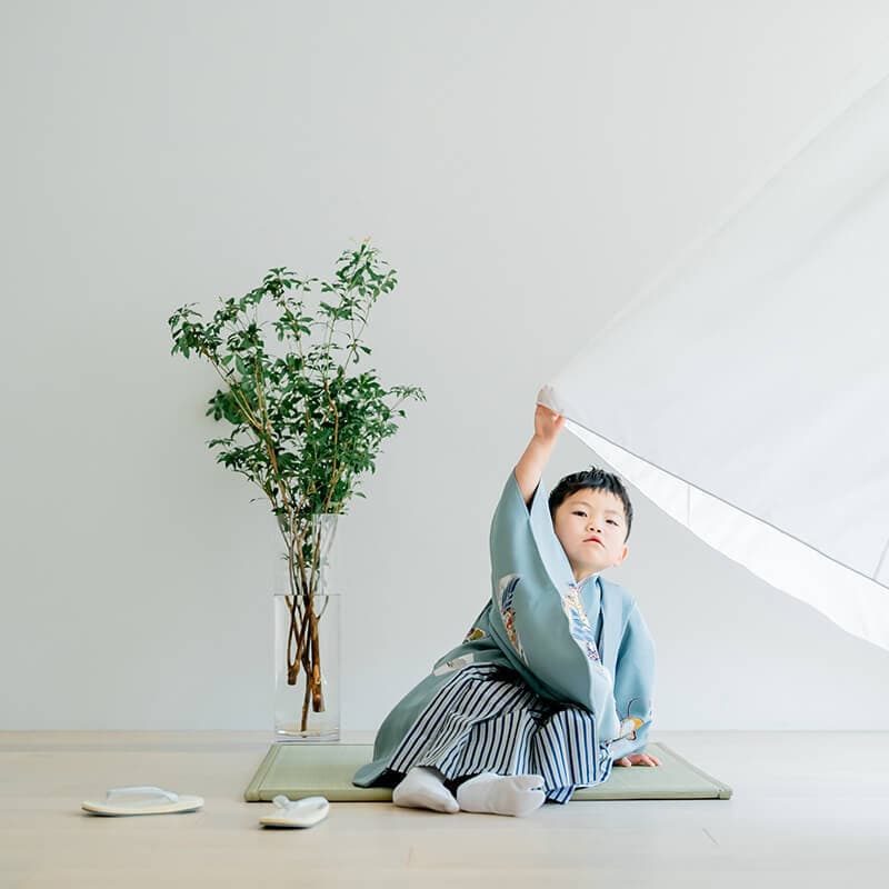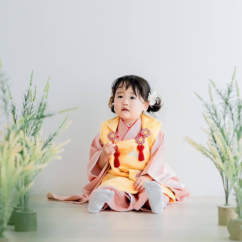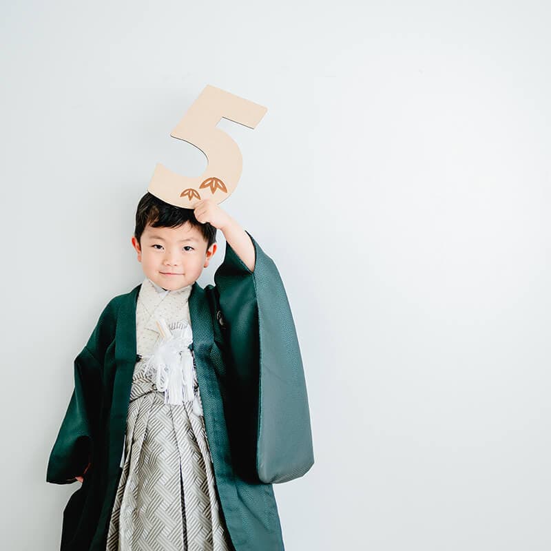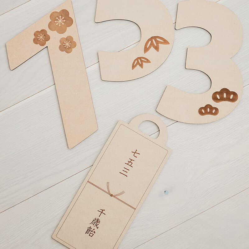七五三の撮影には、和風アイテムや数字モチーフなど、