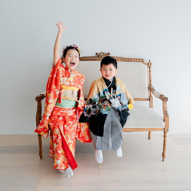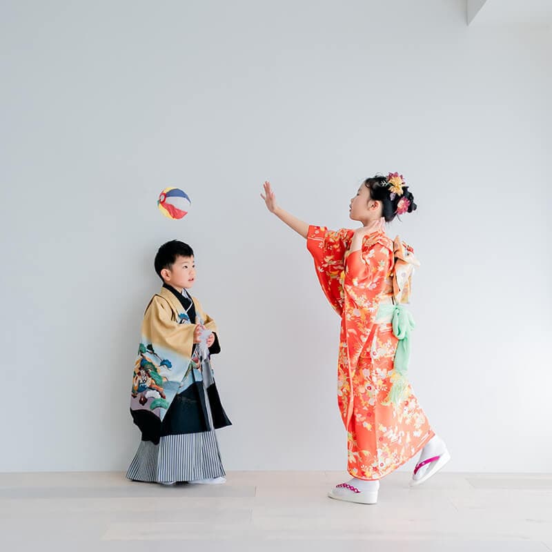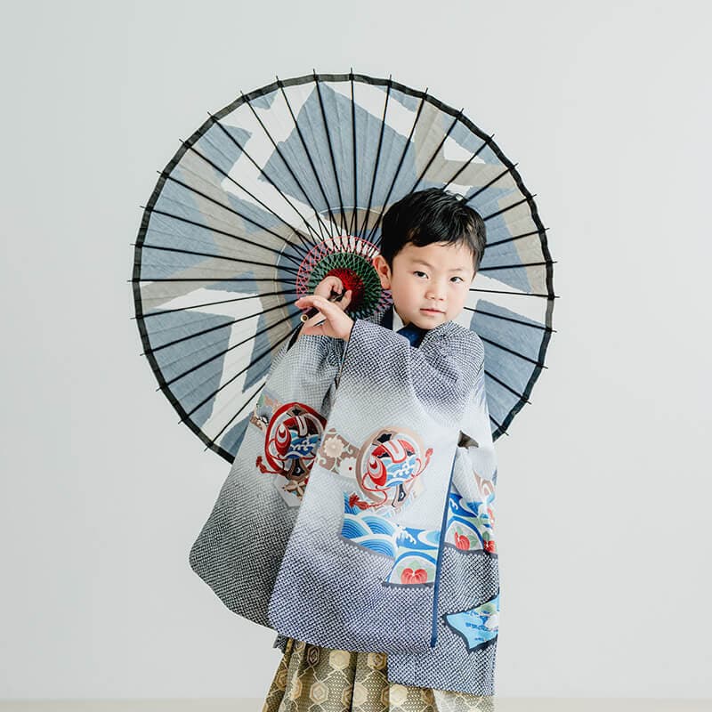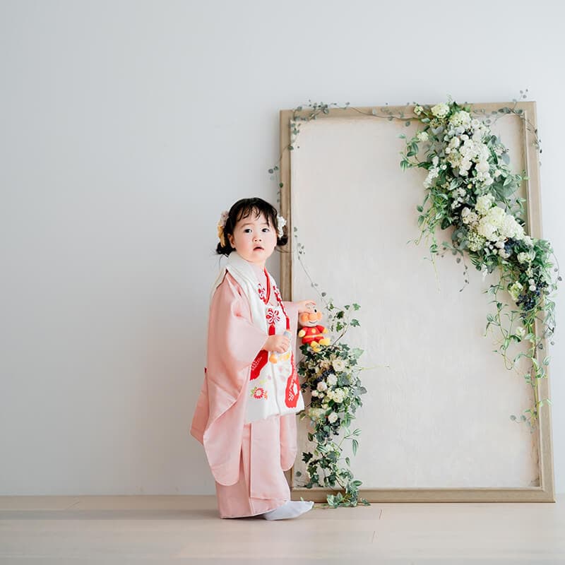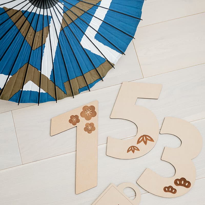 七五三の撮影には、和風アイテムや数字モチーフなど、